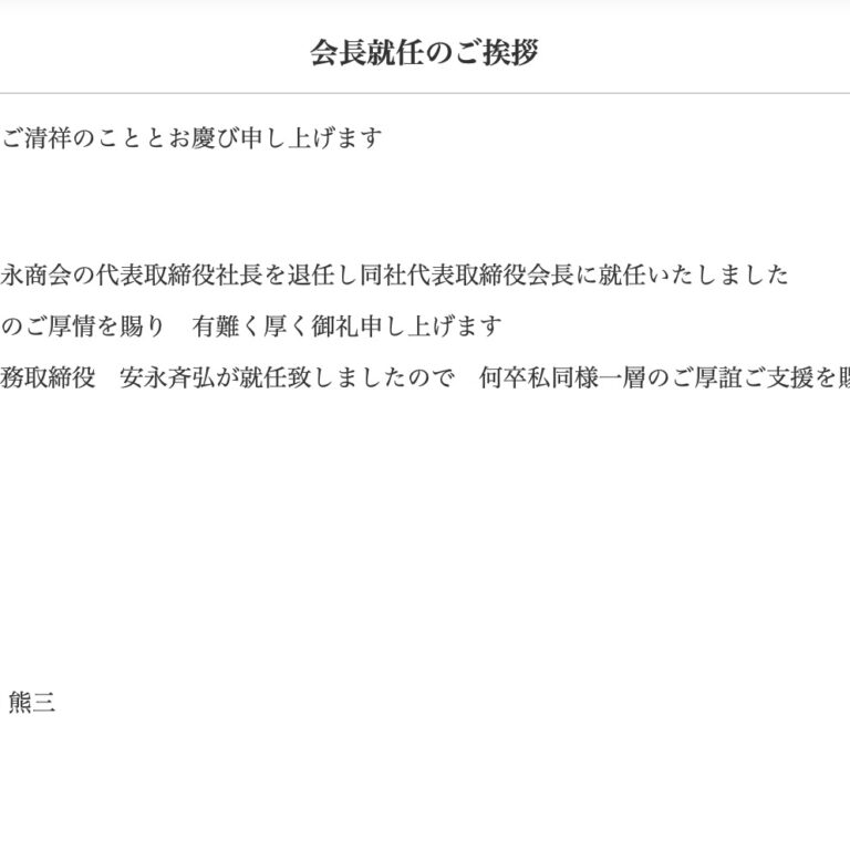 会長就任のご挨拶 謹啓 向春の候 益々ご清祥のこととお慶び申し上げます さて私儀…